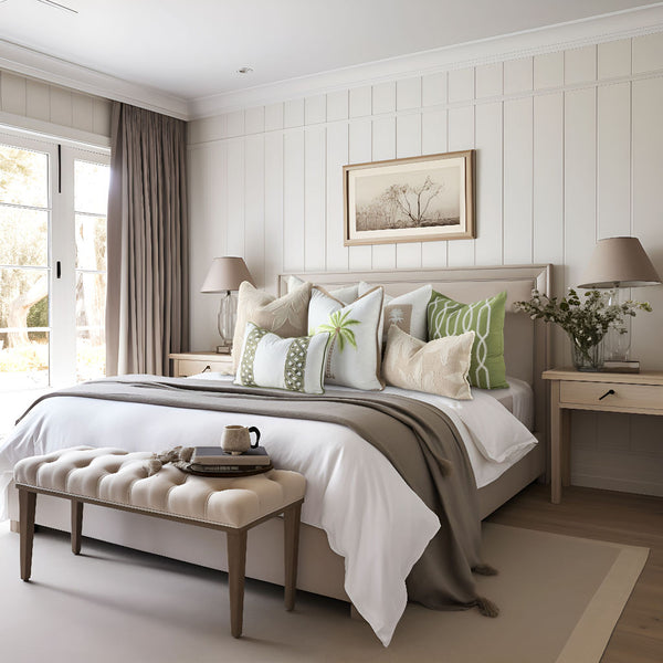 Transform your bedroom into a serene haven. From luxurious linen cushions to thoughtfully selected accents, each piece is chosen to bring tranquility, comfort, and timeless style to your personal retreat.
